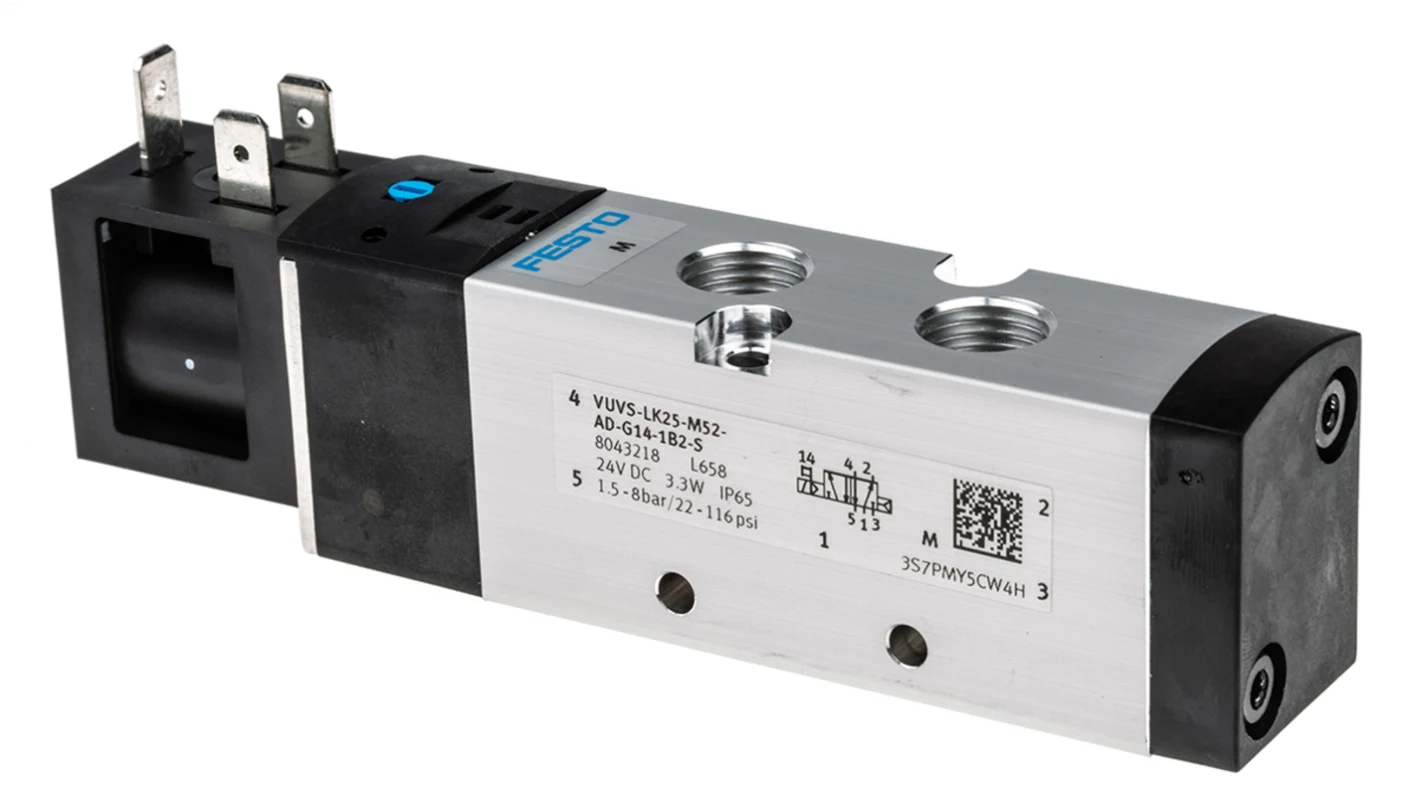 Festo 5/2 Pneumatic Solenoid Valve, G 1/4, 24V DC – VUVS Series – VUVS-LK25-M52-AD-G14-1B2-S, 8043218